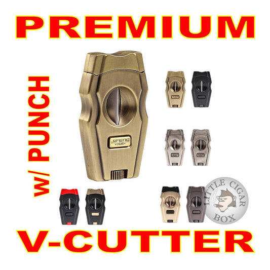 STAINLESS STEEL V-CUT CIGAR CUTTER w/DETACHABLE PUNCH